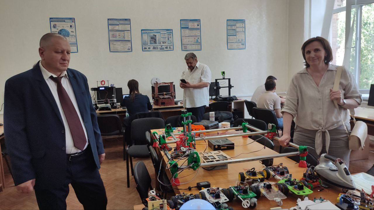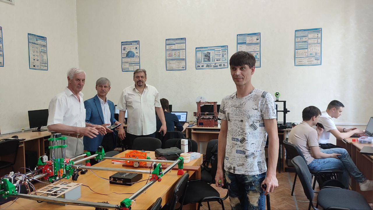 5 червня в рамках візиту з обміну досвідом із впровадження STEM технологій в освітній процес доктор педагогічних наук, професор кафедри фізики Аркадій Кух відвідав STEM лабораторію кафедри математики та цифрових технологій ЦДУ імені Володимира Винниченка. В зустрічі прийняли участь науково-педагогічні працівники Центральноукраїнського державного університету імені Володимира Винниченка: Садовий Микола Ілліч, професор, доктор педагогічних наук, професор кафедри природничих наук і методик їхнього навчання, професор кафедри математики та цифрових технологій; Трифонова Олена Михайлівна, доктор педагогічних наук, професор, завідувачка кафедри математики та цифрових технологій; Сальник Ірина Володимирівна, доктор педагогічних наук, професор, в.о. завідувача кафедри природничих наук і методик їхнього навчання; Сірик Едуард Петрович, кандидат педагогічних наук, доцент, доцент кафедри природничих наук і методик їхнього навчання; Мартинюк Олександр Семенович, професор кафедри експериментальної фізики, інформаційних та освітніх технологій, доктор педагогічних наук, Вонлинського національного університету імені Лесі Українки.