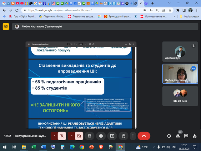У заході прийняли участь студенти фізико-математичного факультету Кам’янець-Подільського національного університету імені Івана Огієнка, які оволодівають навичками використання генеративного штучного інтелекту на курсі “Штучний інтелект в педагогічних дослідженнях”. Доповіді викликали жвавий інтерес до проблеми ШІ в педагогічній діяльності.